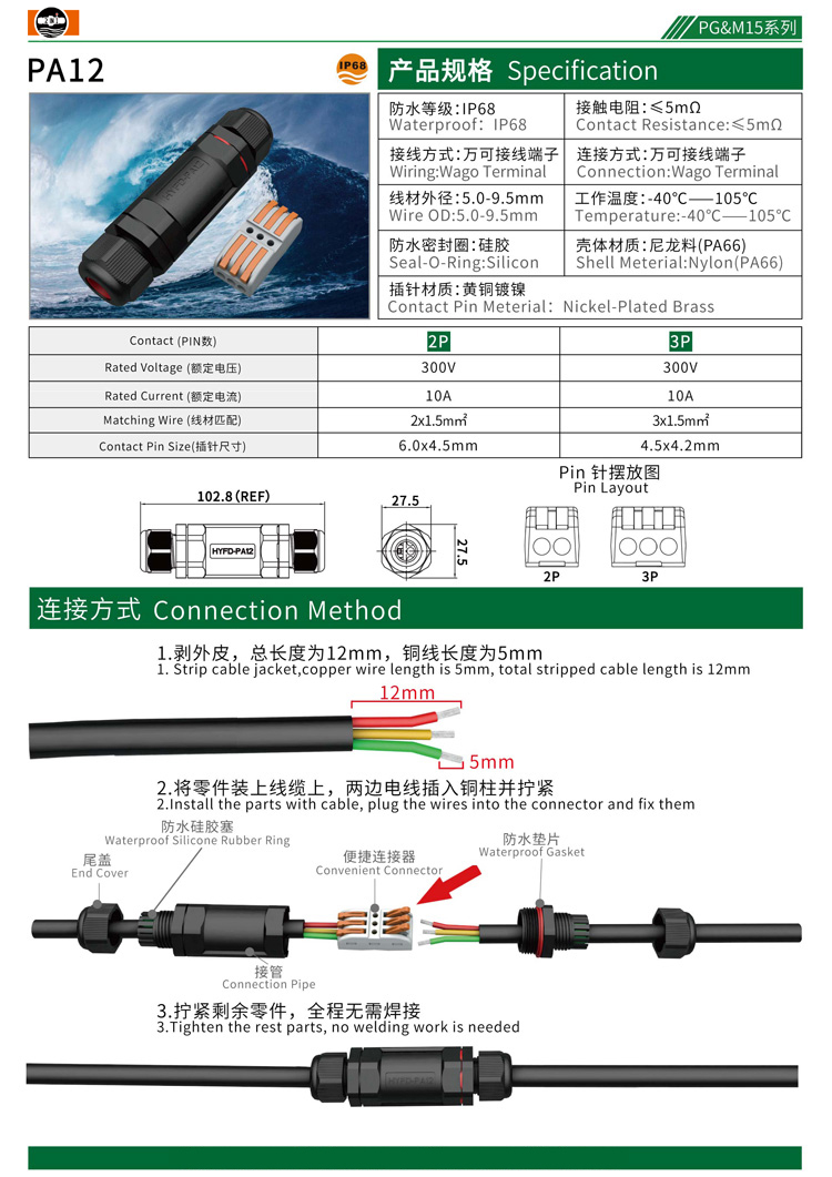 Nižšie je uvedený podrobný prehľad štandardných parametrov a špecifikáciíWago Connectalebosdodávané spoločnosťouShenzhen 2 v 1 Technology Co., Ltd.